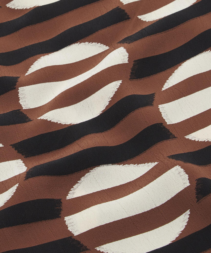 Florlett, løs og luftig. Denne ermeløse skjorten er ideell til en feminin look. Den er designet med et herlig mønster av striper og sirkler i rosa, beige og hvit, en feminin rund hals og knappelukking hele veien ned. Den glatte viskosen er laget med omtanke for miljøet, slik at du kan bruke skjorten med god samvittighet. Nyt de små draperingene på skulder og rygg, og bruk skjorten til mønstret eller ensfarget bukse, skjørt eller shorts.