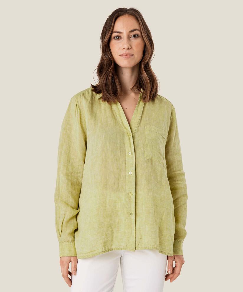Denne herlige skjorten kommer du til å bruke om og om igjen. Den er laget i mykt lin som gjør den lett og luftig å ha på seg. Med sin klassiske passform faller den løst og flott. Skjorten er designet med en dekorativ brystlomme og små draperinger på ryggen for et feminint uttrykk. Bruk den til jeans, leggings eller åpen som jakke. Den passer til alt!