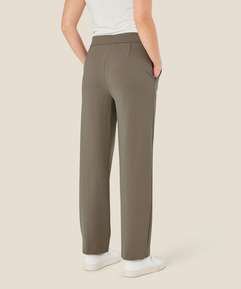 Leter du etter stilige bukser som sitter som en drøm? Da er disse myke buksene i jersey et godt valg. Buksen sitter tett inntil kroppen øverst, mens de lange rette bena gir ekstra vidde. Den er også designet med passepoilerte lommer, påsydde pressefolder og strategiske folder bak, noe som gjør den ekstremt velsittende. Enten du styler den med en topp, skjorte eller strikk, får du en uanstrengt stilfull look.
