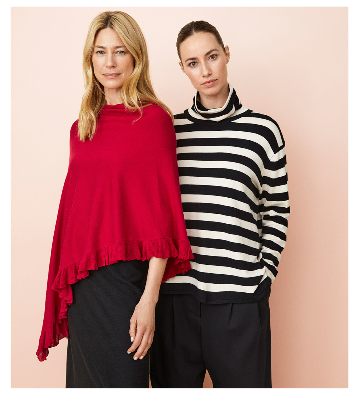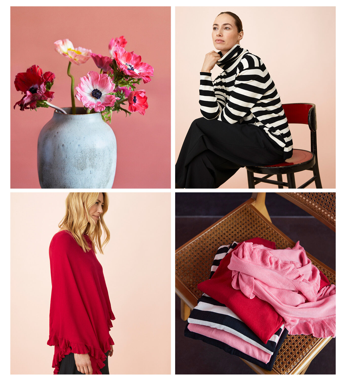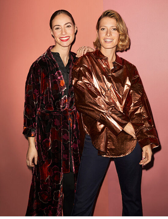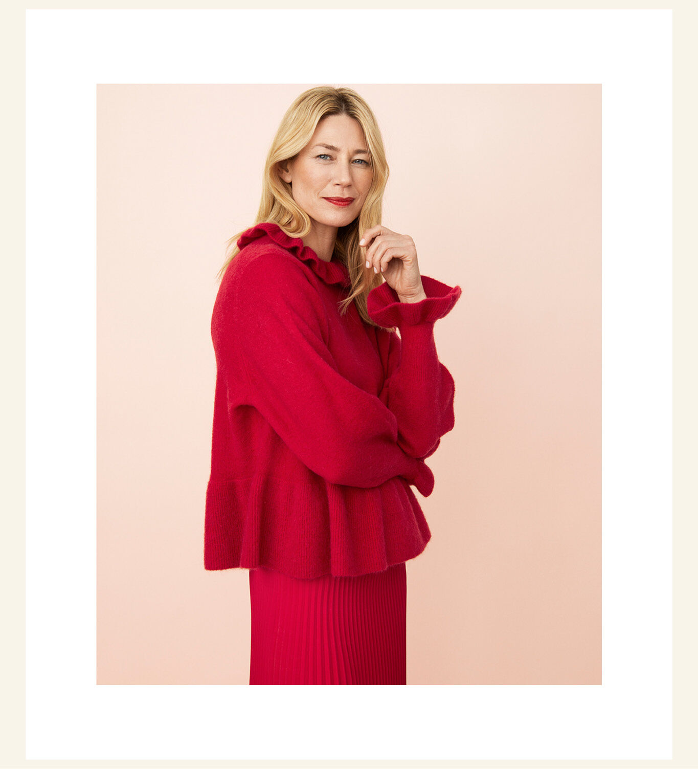 Kolleksjonen byr på tidløse design, en vakker rødfarge, gull, glitter, velur og myk rayonstrikk – alt du trenger for en festlig og feminin stil med kompromissløs komfort.