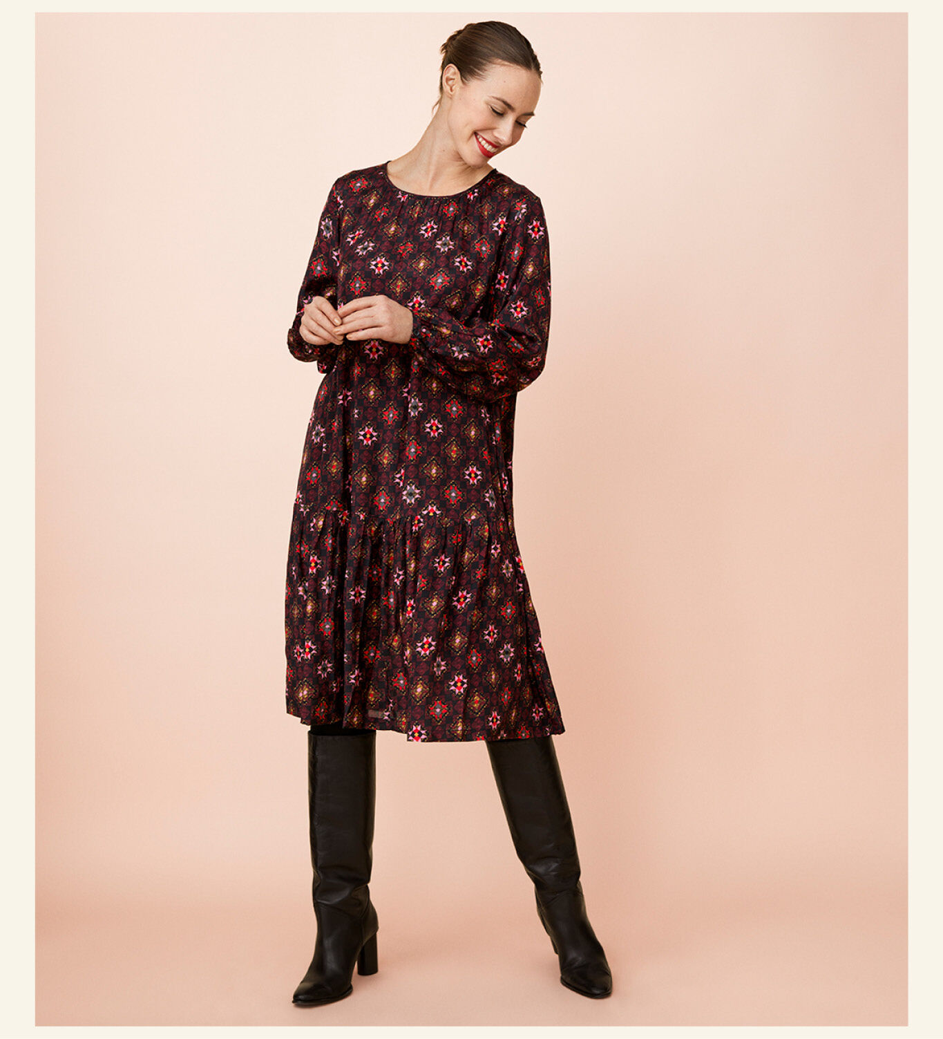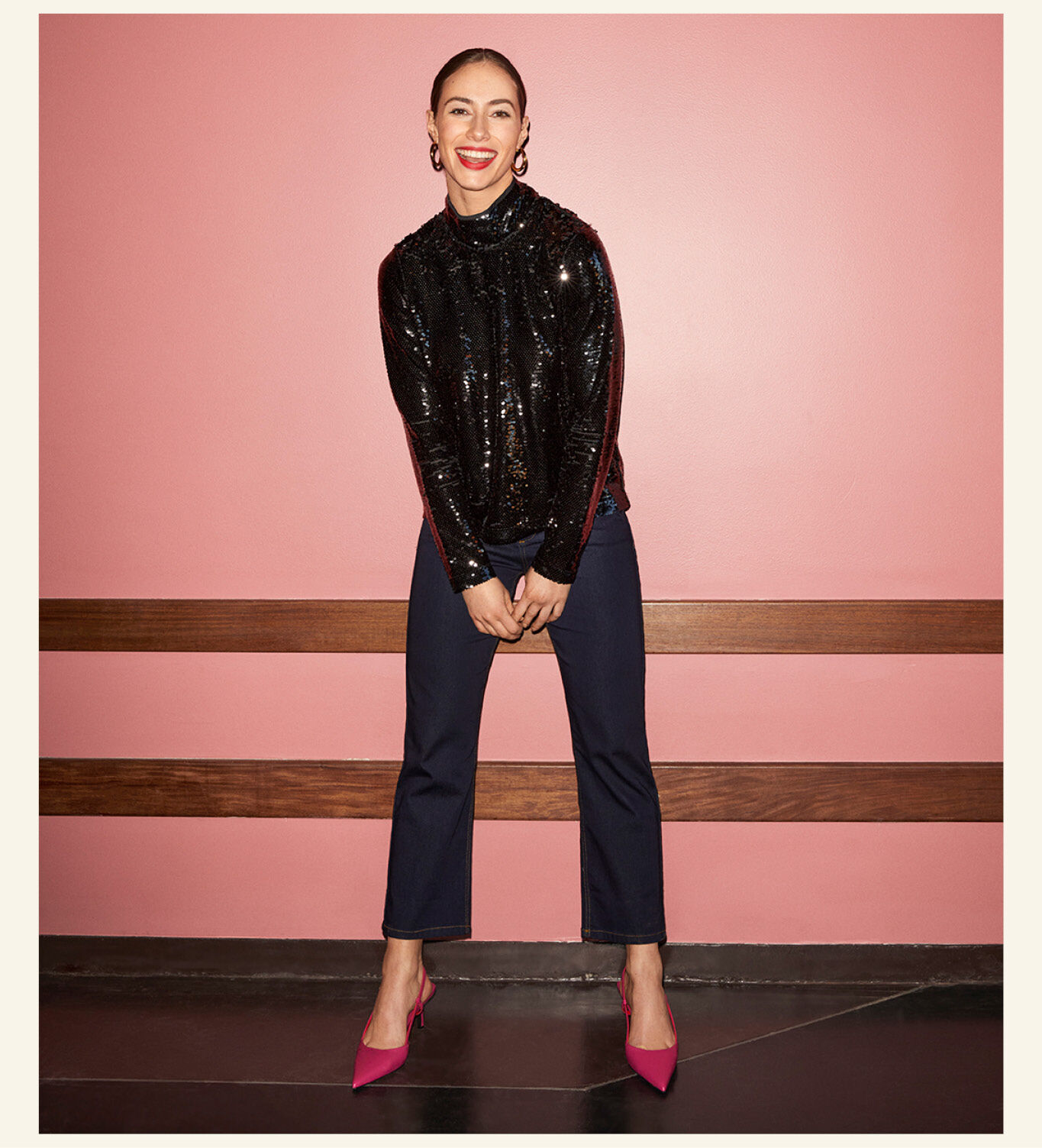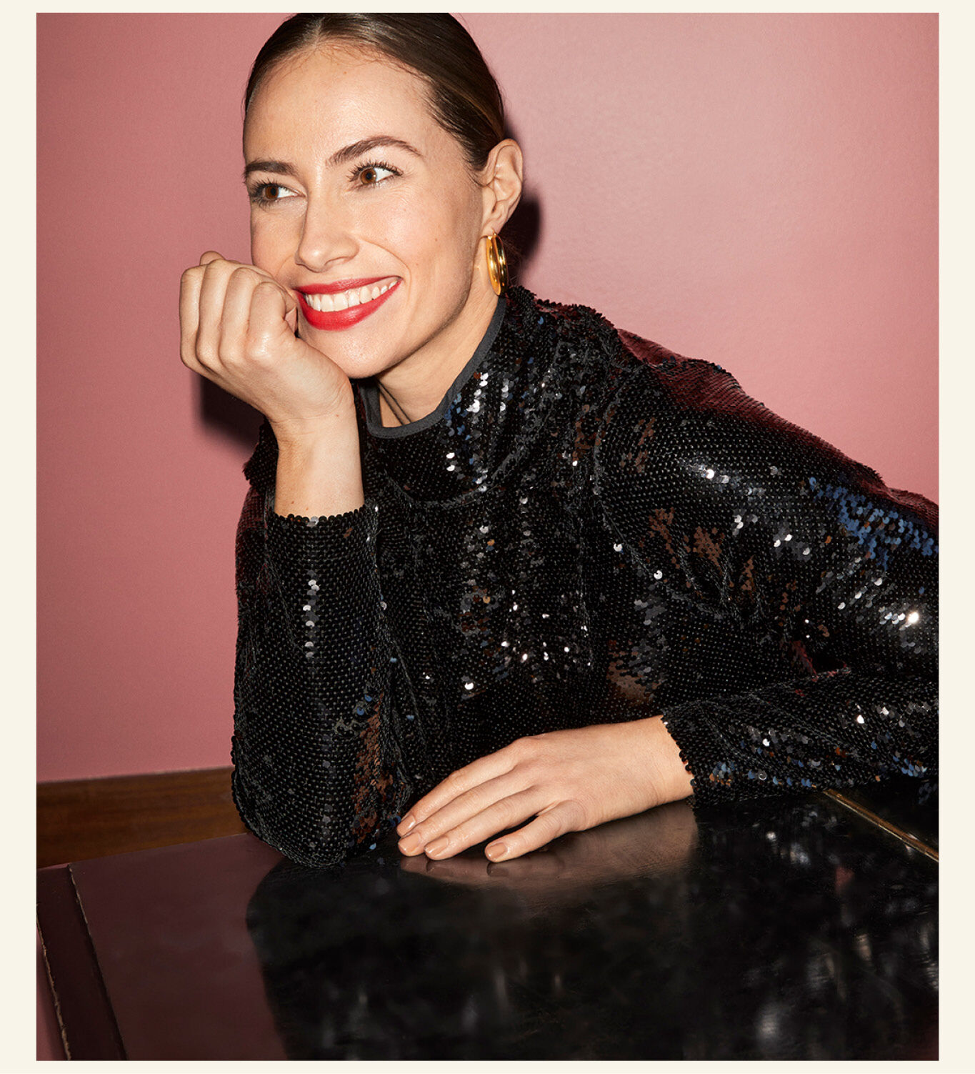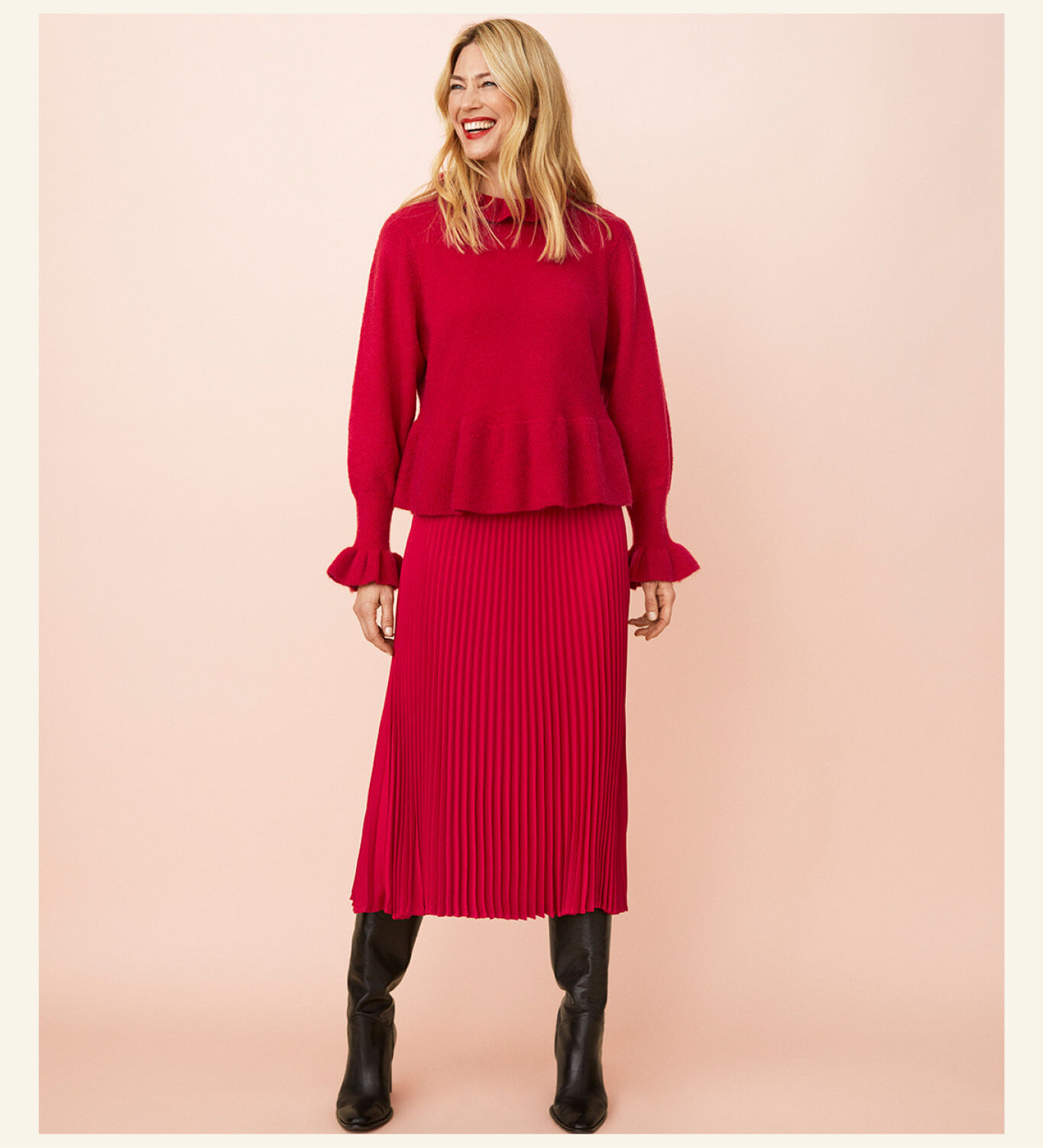 Kolleksjonen byr på tidløse design, en vakker rødfarge, gull, glitter, velur og myk rayonstrikk – alt du trenger for en festlig og feminin stil med kompromissløs komfort.