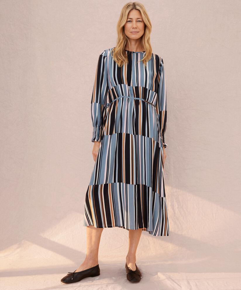 Hvis du liker trykk, vil de vakre pastellstripene på denne kjolen få hjertet ditt til å banke litt raskere.