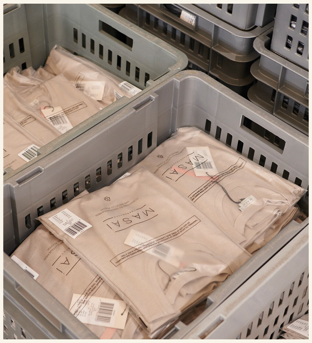 Emballasje er viktig for å beskytte klærne våre når de sendes rundt i verden – fra produksjonssted til butikk. Først og fremst av respekt for ressursene og materialene som brukes til å lage klærne våre, og til syvende og sist av hensyn til kundene våre som får klær uten flekker og fuktighet.