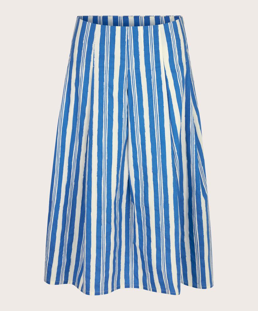 Enkle striper er både feminine og elegante. Som på dette skjørtet, der hvitt og en klar blånyanse skaper en dynamisk duo. Skjørtet er laget i knitrende bomull med mye legg, slik at det faller flott og flagrende langs kroppen. Det lukkes med glidelås i siden. Bruk skjørtet med en enkel hvit topp for en stilfull look – eller gå all in på stripene med vår matchende skjorte.