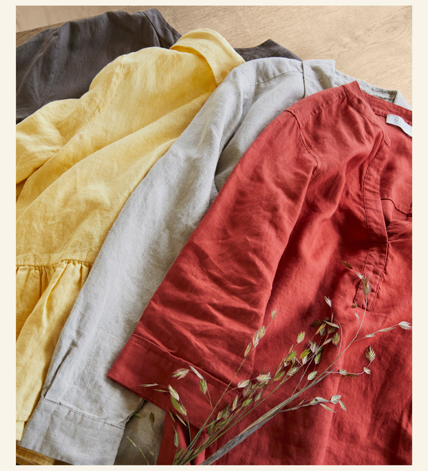 Vårkolleksjonen byr på klare farger og flatterende silhuetter designet i herlig og naturlig lin – et materiale vi elsker på grunn av den naturlige skjønnheten, de temperaturregulerende egenskapene og den fantastiske holdbarheten.